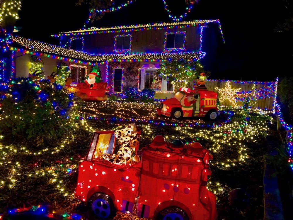 My Fire Chief nephew continues the tradition and never fails to embellish his house with the greatest light display. Since he was a little kid, he has been lighting the way for Santa Claus with his creativity.