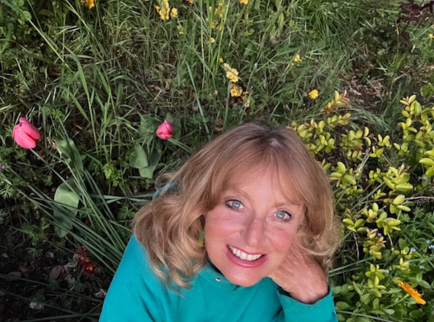 Cynthia Brian amongst the weeds and the blooms of Earth Day!