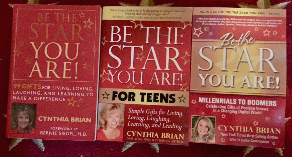 Books are the gifts that keep on giving. This past week, I received an email from J.R. from Missouri who wrote “ Thank you for writing a positive book that makes me happy, Be the Star You Are! 99 Gifts for Living, Loving, Laughing, and Learning to Make a Difference. I originally read it more than 20 years ago when I very much needed to rise from depression. For the first time in two decades, I am learning from it again. I love your book. It is very inspiring!” Notes, emails, letters, and calls continue to arrive from readers who have benefited from the Be the Star You Are!® series. You can receive the book package with a donation and be uplifted.
