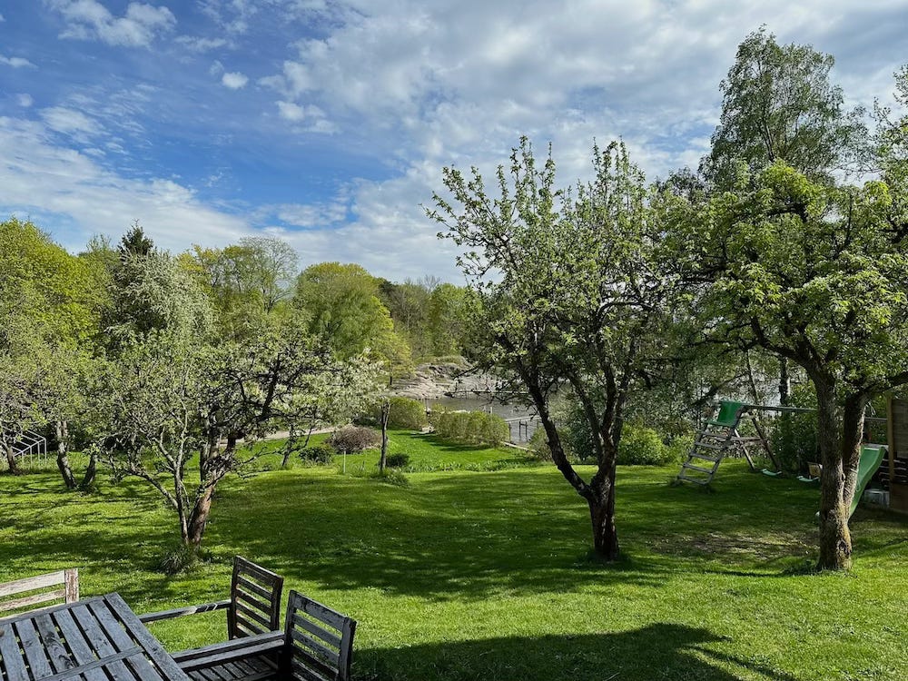 The birds are flocking to the two trees. Every day I watch them devour my precious, unripe fruit, as I impatiently wait for the sunshine to turn the orbs into deep reds and purple. Finally, I can’t take it anymore. I grab my pruning shears and put on my boots, taking a colander.
