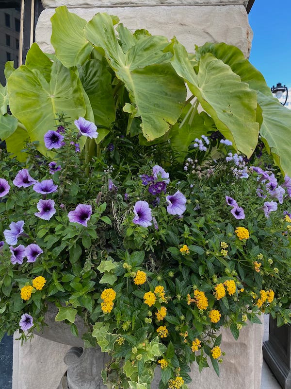 It’s easy to design a beautiful combination by tucking several different species into a container filled with potting soil, allowing calibrachoas, verbenas, and petunias to spill over the sides.
