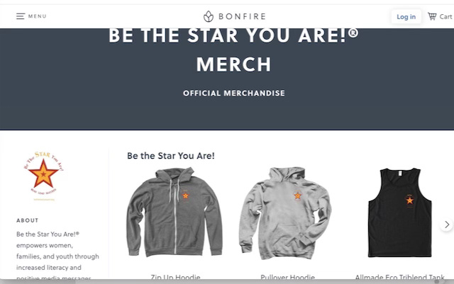 1. Buy shirts, hoodies, sweatshirts, kid’s T-shirts, long-shirt tees, and hats in many colors on our new Bonfire Official Merchandise site with proceeds benefiting the charity. Check it out and shine with Be the Star Be the Star You Are! Great gifts for the holidays! Here's the link https://www.bonfire.com/store/be-the-star-you-are-merch/