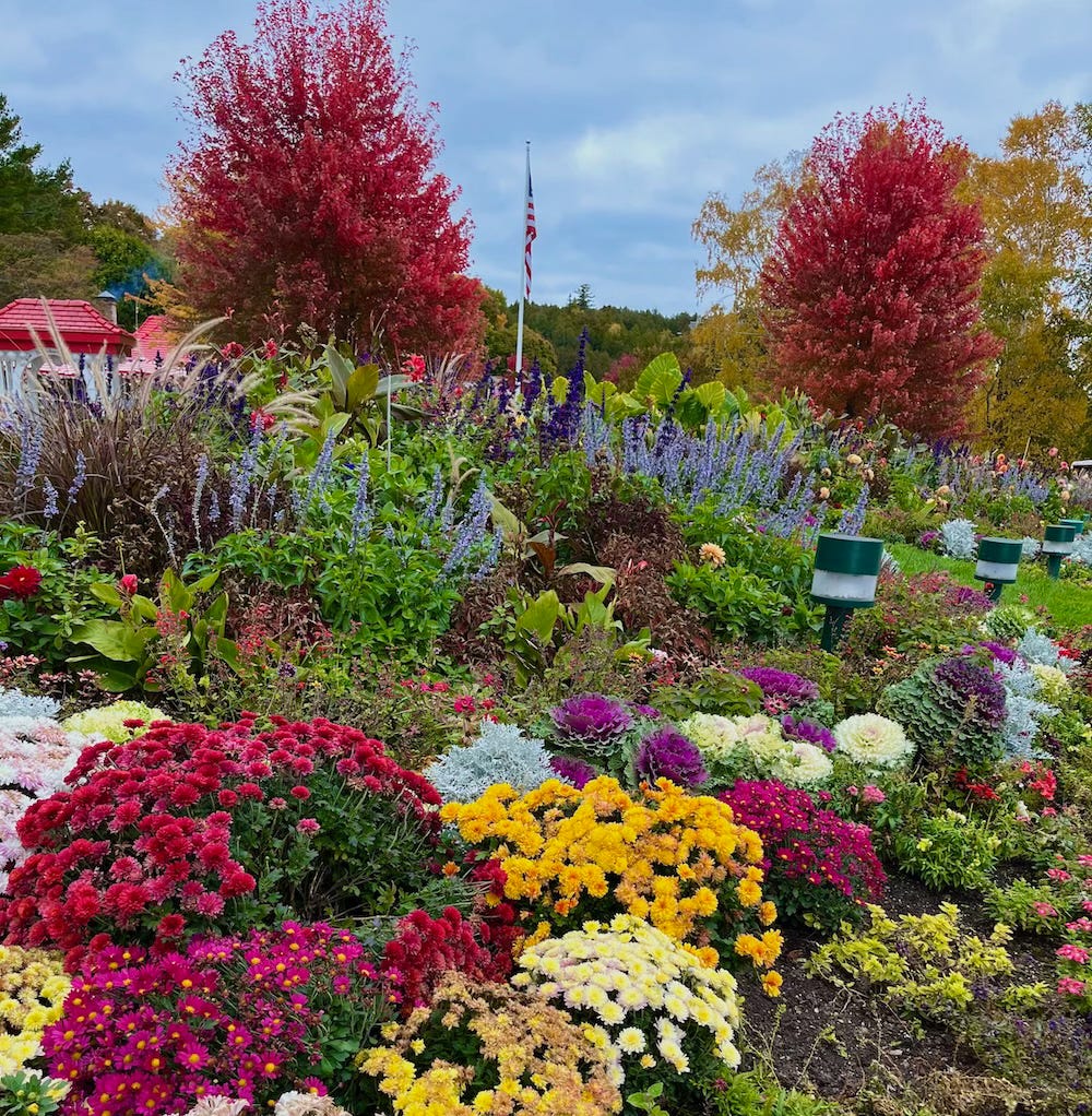 What else has me charmed this autumn? Chrysanthemums, blue plumbago, and crimson fountain grass are attractive plants that add color and interest to autumn gardens.