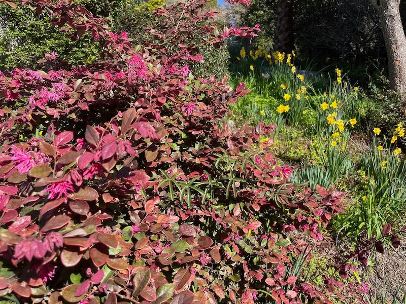 I am overwhelmed with the beauty of this post! Did I spy a witch hazel tree? It is an early bloomer, yes? In this absolutely dreadful days of powerful men acting badly with no shame (wars, bombing children, children being assaulted with no consequences, etc.) Going to the sanity of a garden is the only healing place to be grounded.
