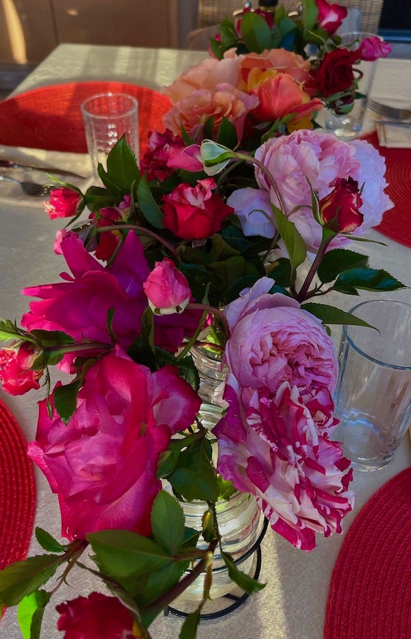 CELEBRATE the summer solstice by creating an upscale, yet casual table arrangement with a variety of roses.