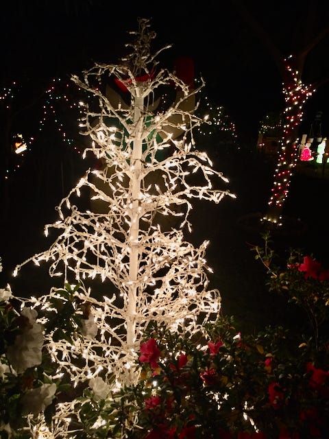 Like so many Americans, the day after Thanksgiving I pulled out my stored Christmas décor. I’m not one to shop on Black Friday, preferring not to fight the crowds for sale items that I don’t need. Instead, I chose to bask in the deliciousness of autumn by spending time meandering around my garden with my adopted animals in tow, deciding where to display my holiday treasures. It was a beautiful clear, warm day with a gentle breeze that tickled the leaves to fall like feathers. Songbirds caroled as hawks circled above in the air currents. As I inhaled the fragrance of pine needles, I exhaled joy and gratitude for such natural splendor.