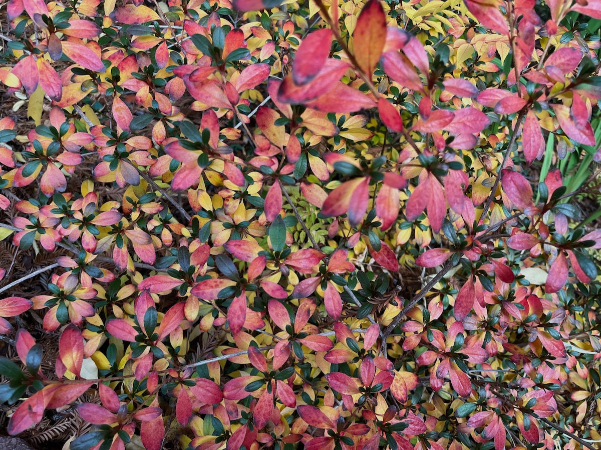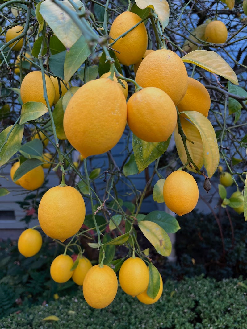 Sprays of yellow Meyer lemons glowed like sunshine, while azalea bushes sported leaves in rainbow hues.