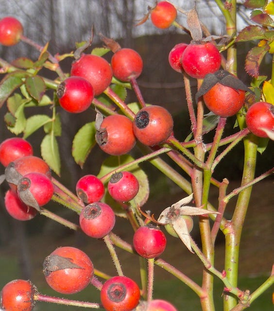 ü ALLOW rosehips and berries to remain on the bushes as holiday bird feasts and picturesque ornaments.