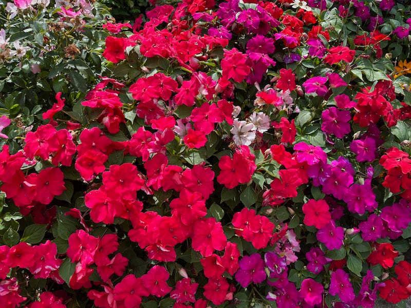 ü ENJOY the bright colors of impatiens in borders and beds.