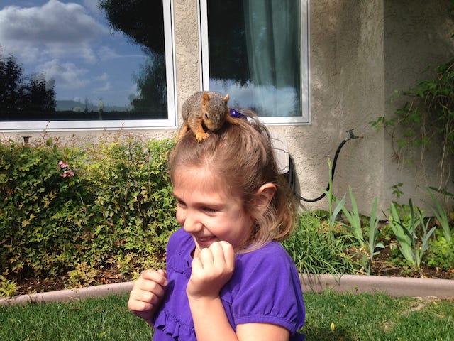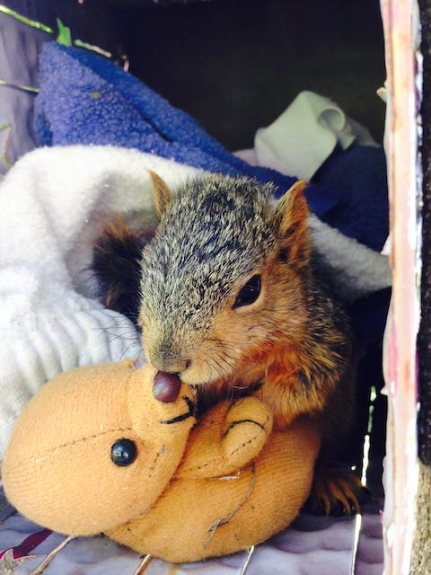 Everyone who met Squiggly Wiggly fell in love with this tiny rambunctious squirrel. His favorite places to hang out were on the head, shoulders, or in a deep pocket of any of his adopted family members.